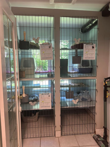Our guests are only allowed out of their rooms one at a time. If multiple cats are from the same home, they will be allowed out together if permission by the owner if granted.